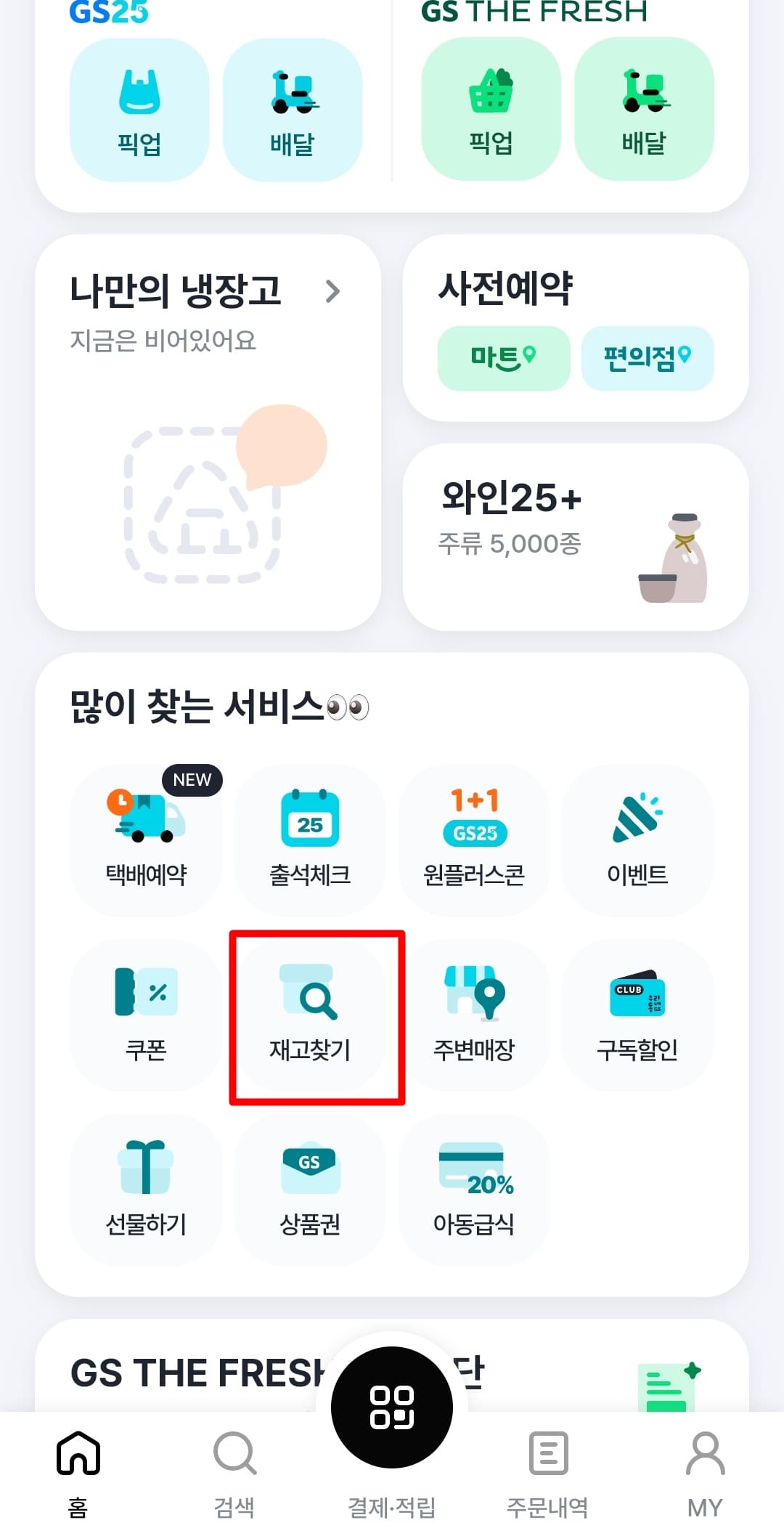 GS 편의점 상품 재고를 확인하는 방법은 '우리 동네 GS' 어플 에서 가능합니다.