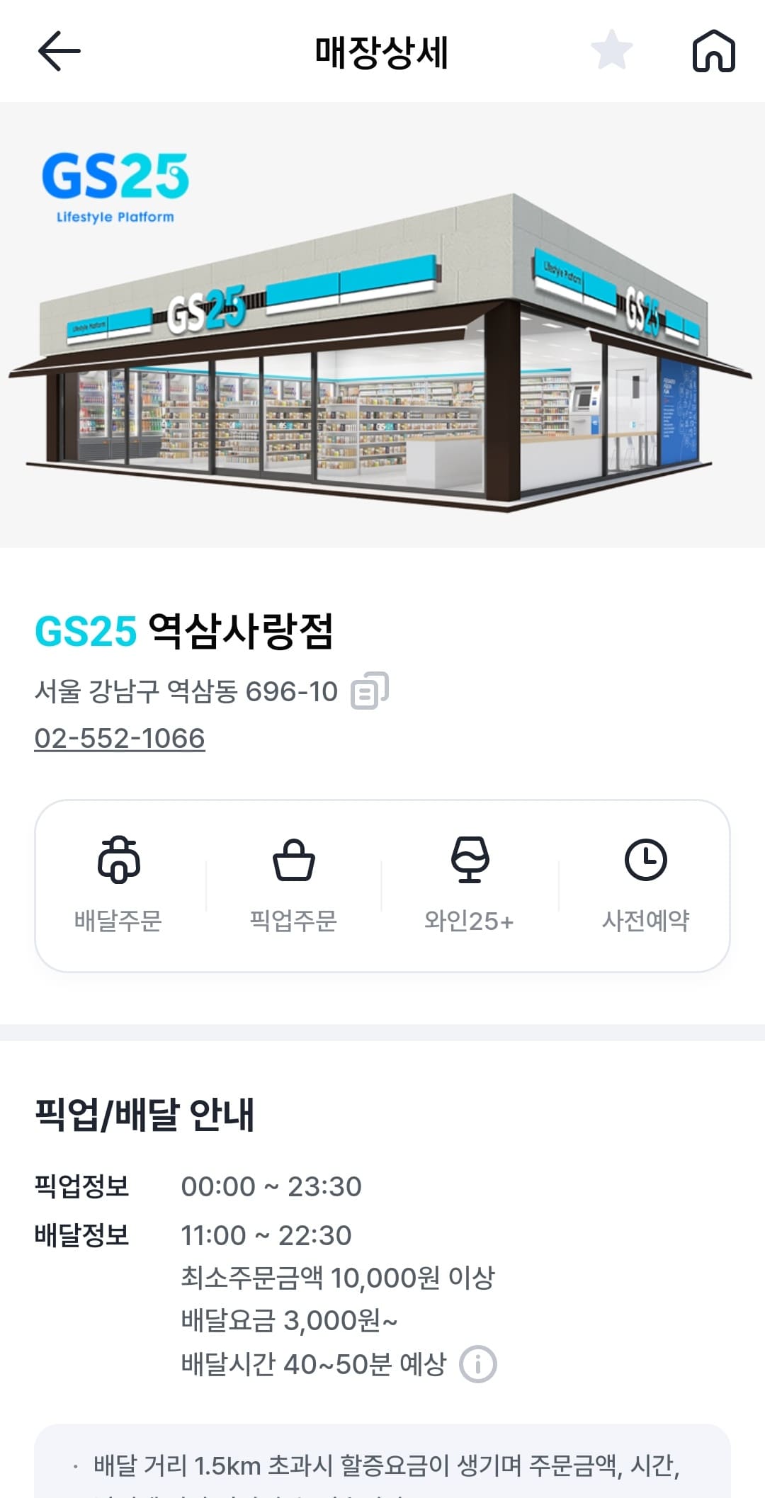 6. 핀 선택 시 아래와 같이 편의점 정보가 노출됩니다.