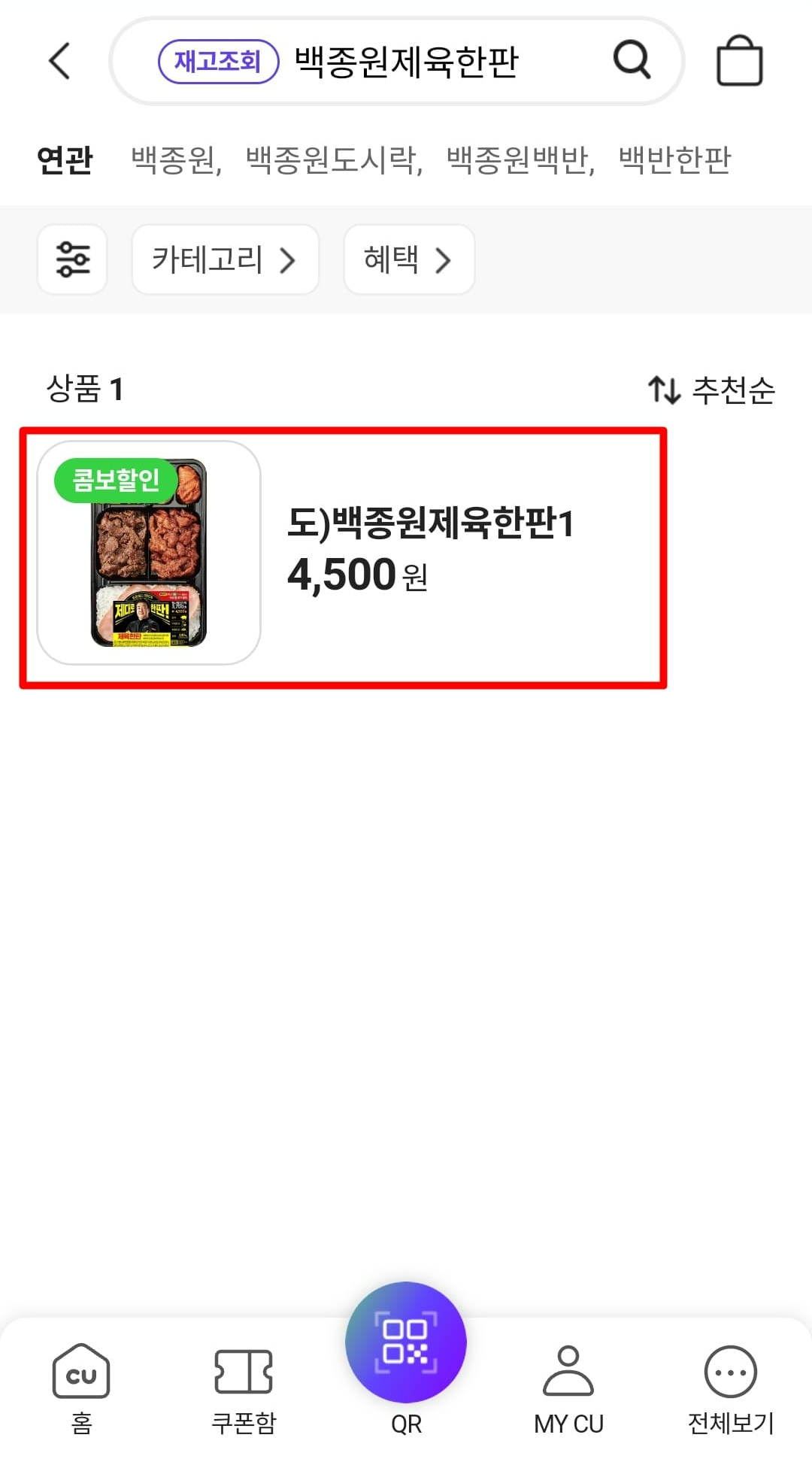 4. 저는 '백종원제육한판'을 검색해 보았습니다.