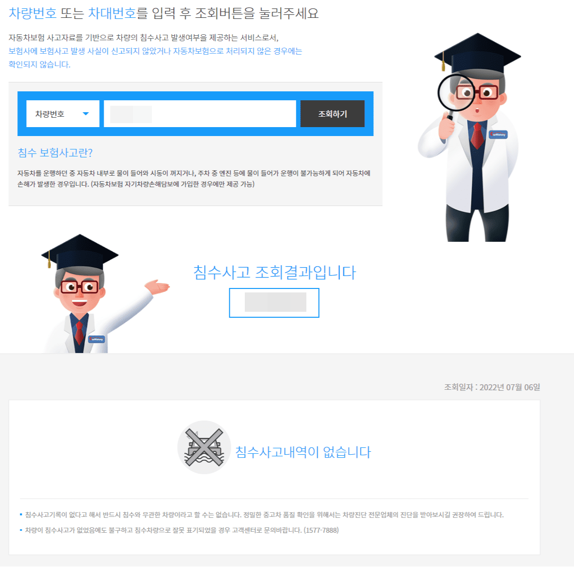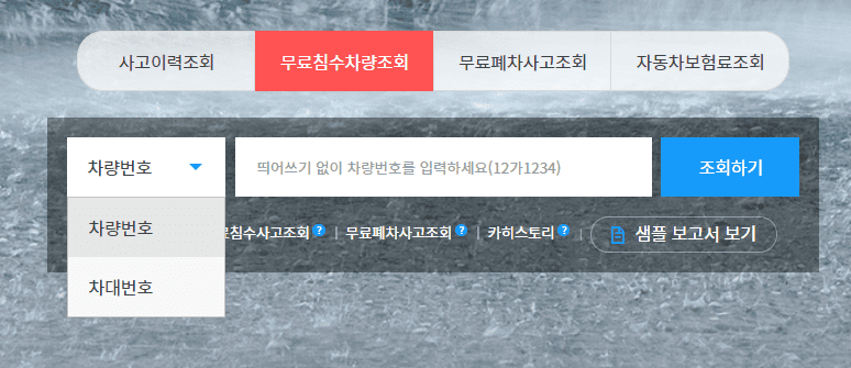 카히스토리 사이트에서는 무료 침수 차량 조회도 가능합니다.