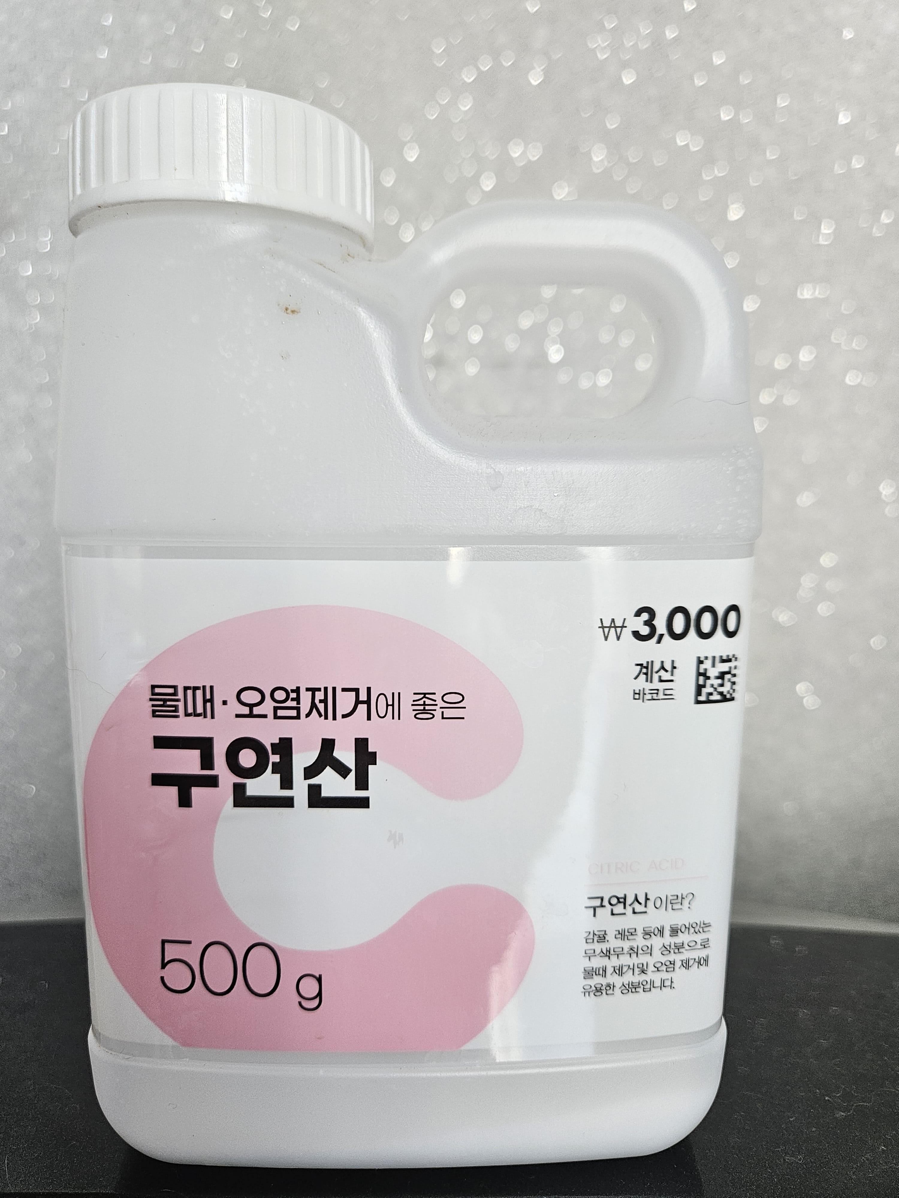 구연산은 강한 산성을 지닌 유기 화합물로, pH 1.5의 산성을 통해 물때와 석회질 제거에 탁월한 효과를 보입니다.