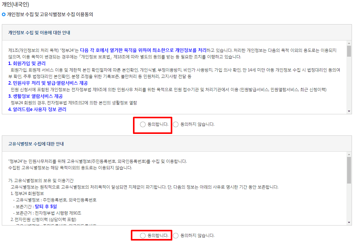 5. 비회원 선택 시 아래처럼 이용동의 페이지가 나오는데요