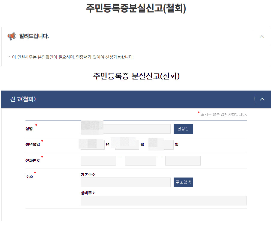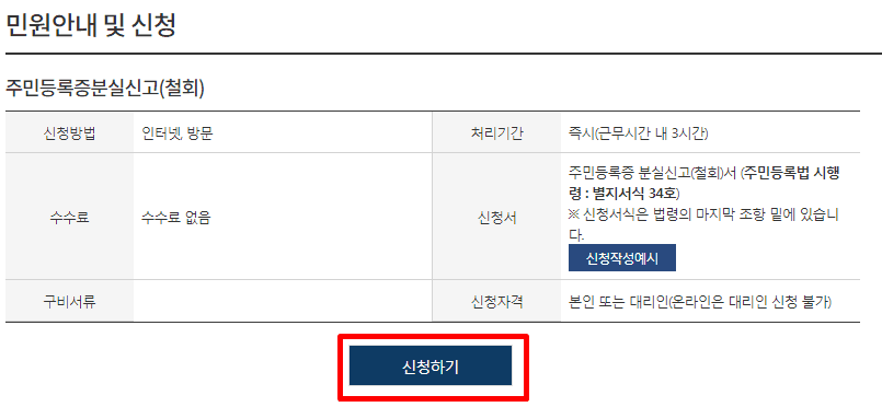 주민등록증 분실 시에는 먼저 분실 신청부터 해야합니다.