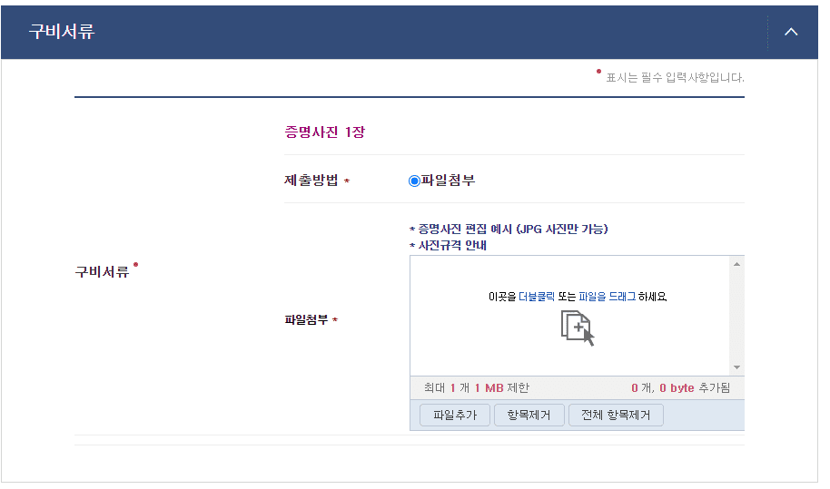 - 모자 등 악세사리를 착용하지 않은 6개월 이내에 촬영한 3.5㎝×4.5㎝ 상반신 사진 1장