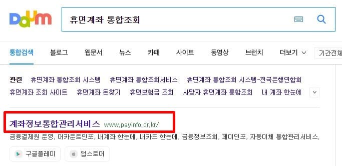 1. 검색창에 "휴면계좌통합조회"를 검색하신 후 사이트에 접속해주세요.