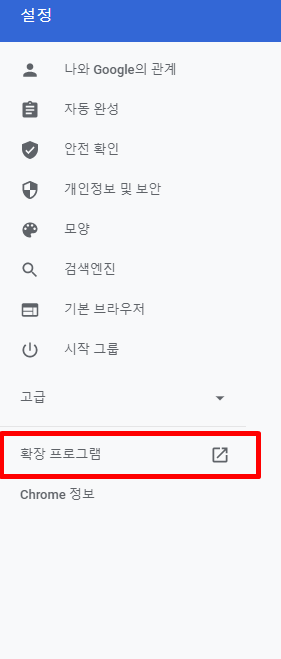 2. 하단에 '확장 프로그램' 을 선택합니다.