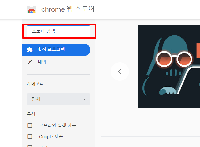 5. 원하는 확장프로그램명을 검색창에 입력해주세요.