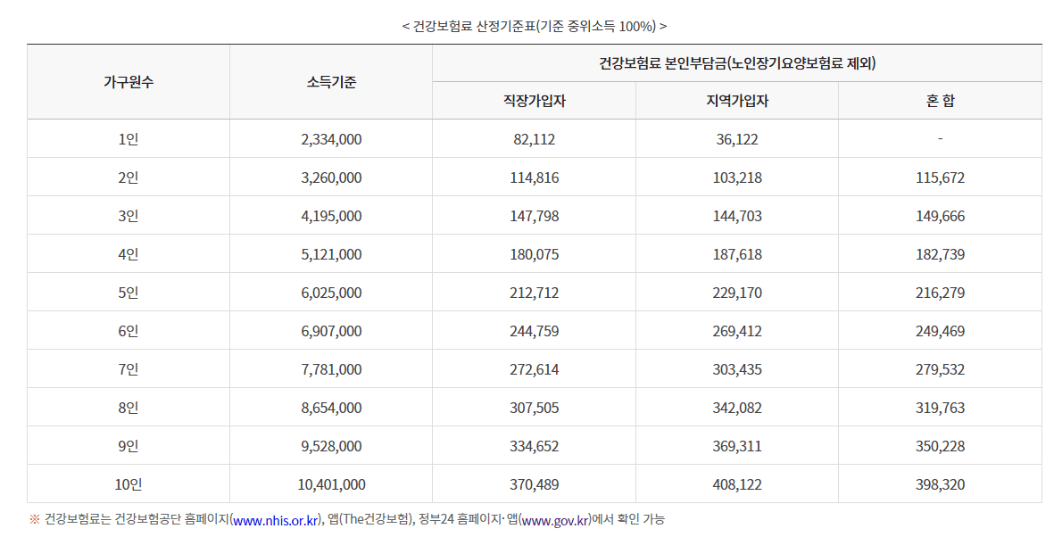 - 건강보험료는 전체 가구원 중 '보험가입자'의 본인 부담금을 합산