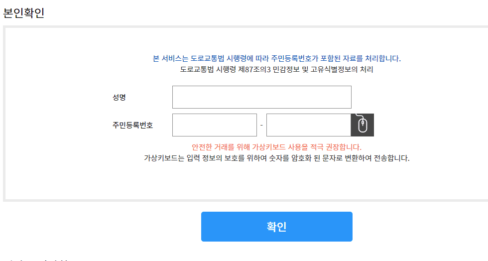 3. 운전면허증 재발급을 위해서는 본인확인이 필요합니다. 성명 주민등록번호 입력 후 원하는 본인확인 방법으로 진행해주시기 바랍니다.