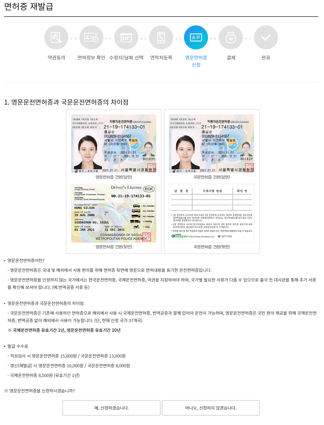 8. 영문면허증도 신청여부 선택 후 다음 페이지로 이동해주세요.