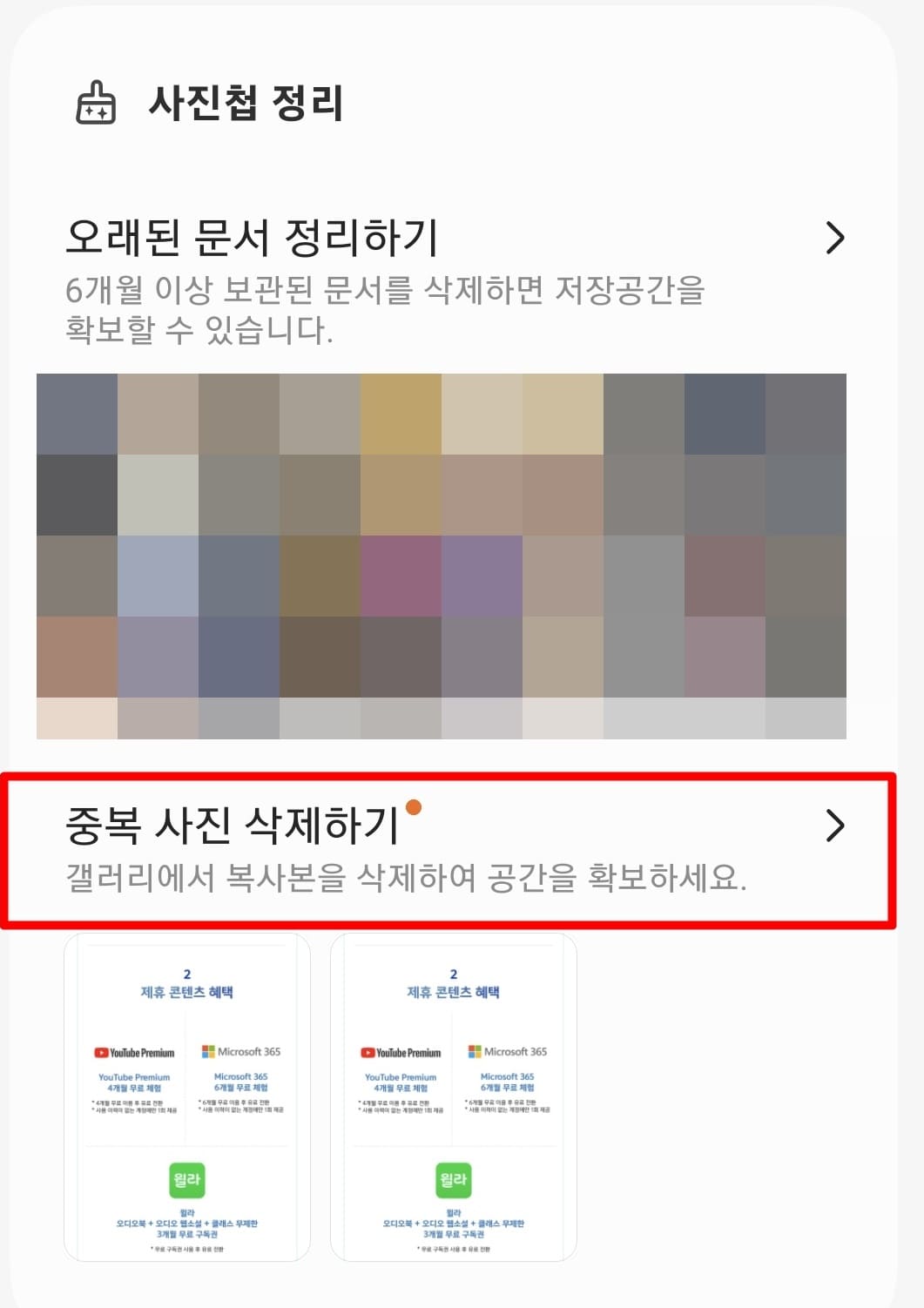 2번은 추가로 어플을 설치하지 않고 간단하게 중복된 사진을 정리할 수 있어 가장 편리합니다.