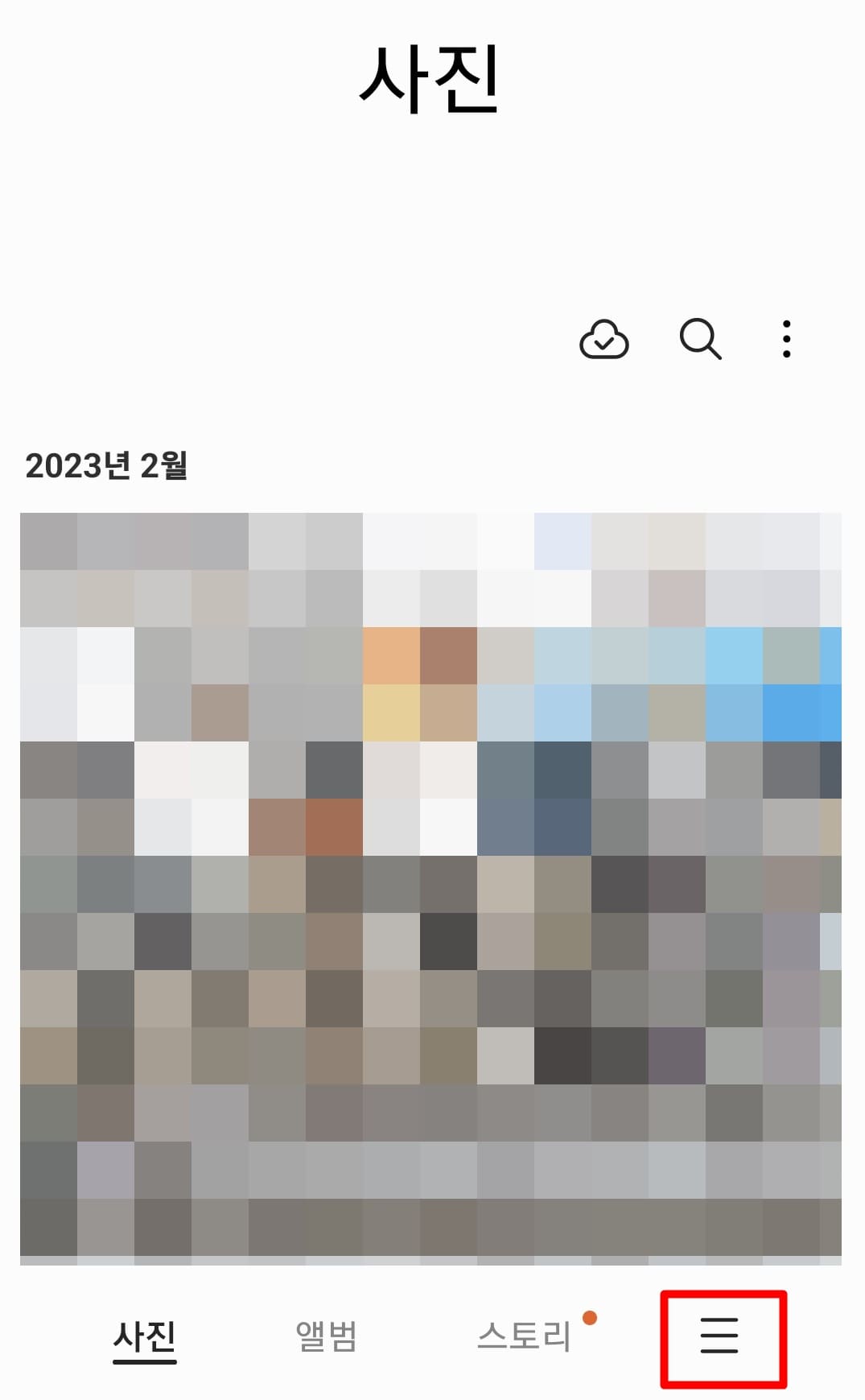 1. 갤러리 어플 우측 하단에 더 보기 (작대기 세 개) 버튼을 선택해 주세요.
