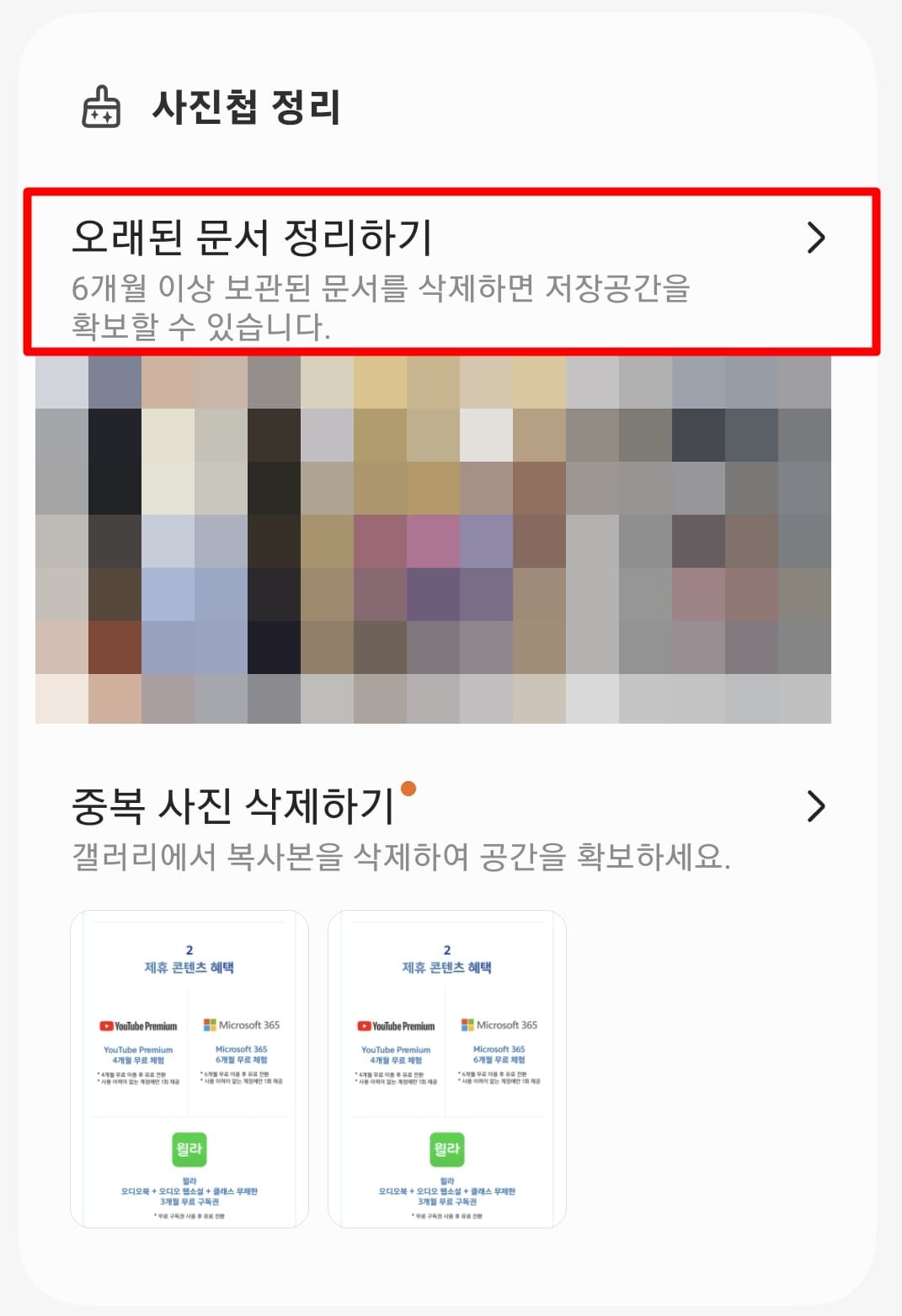 위 갤러리 기능들 중에 오래된 사진을 정리하는 기능도 있어 같이 소개를 드리고자 합니다.
