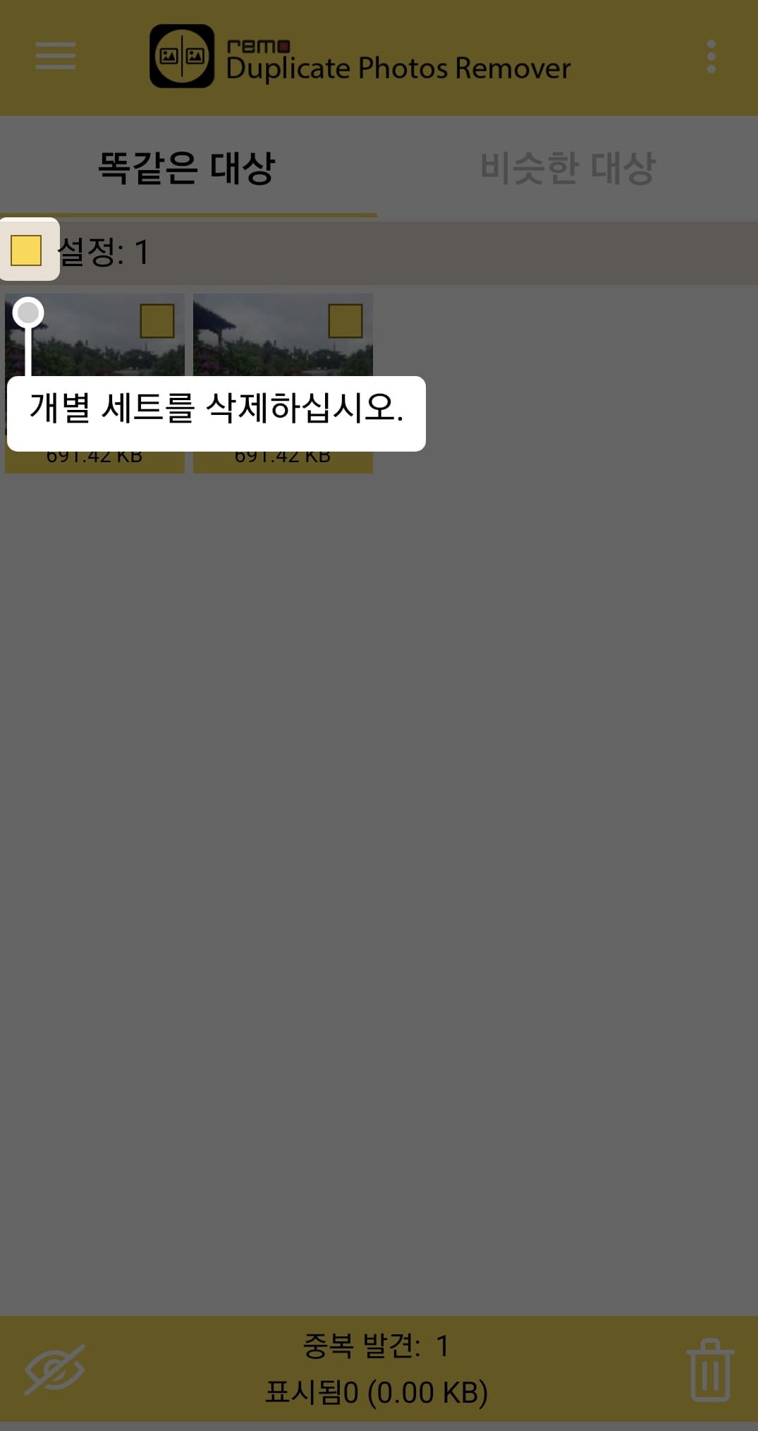 4. 아래와 같이 중복된 사진들이 노출되며 화면에 표시된 [중복 삭제] 버튼을 선택해 주세요.