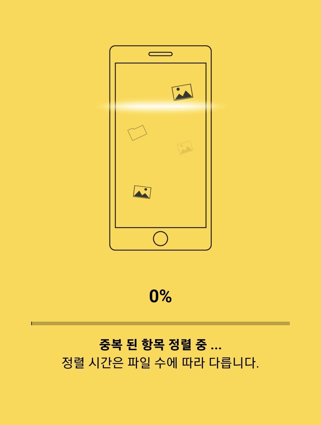3. [스캔] 버튼을 선택하시면 중복된 항목 정렬 중 화면으로 이동됩니다.