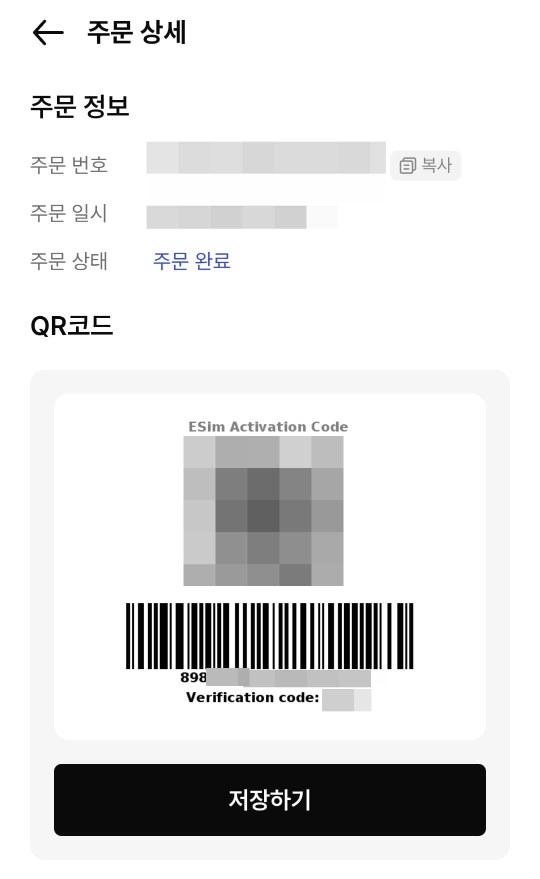 ICCID : eSIM QR 코드 하단에 있는 코드를 입력하시면 됩니다. 8985234 이후 번호를 입력하세요.
