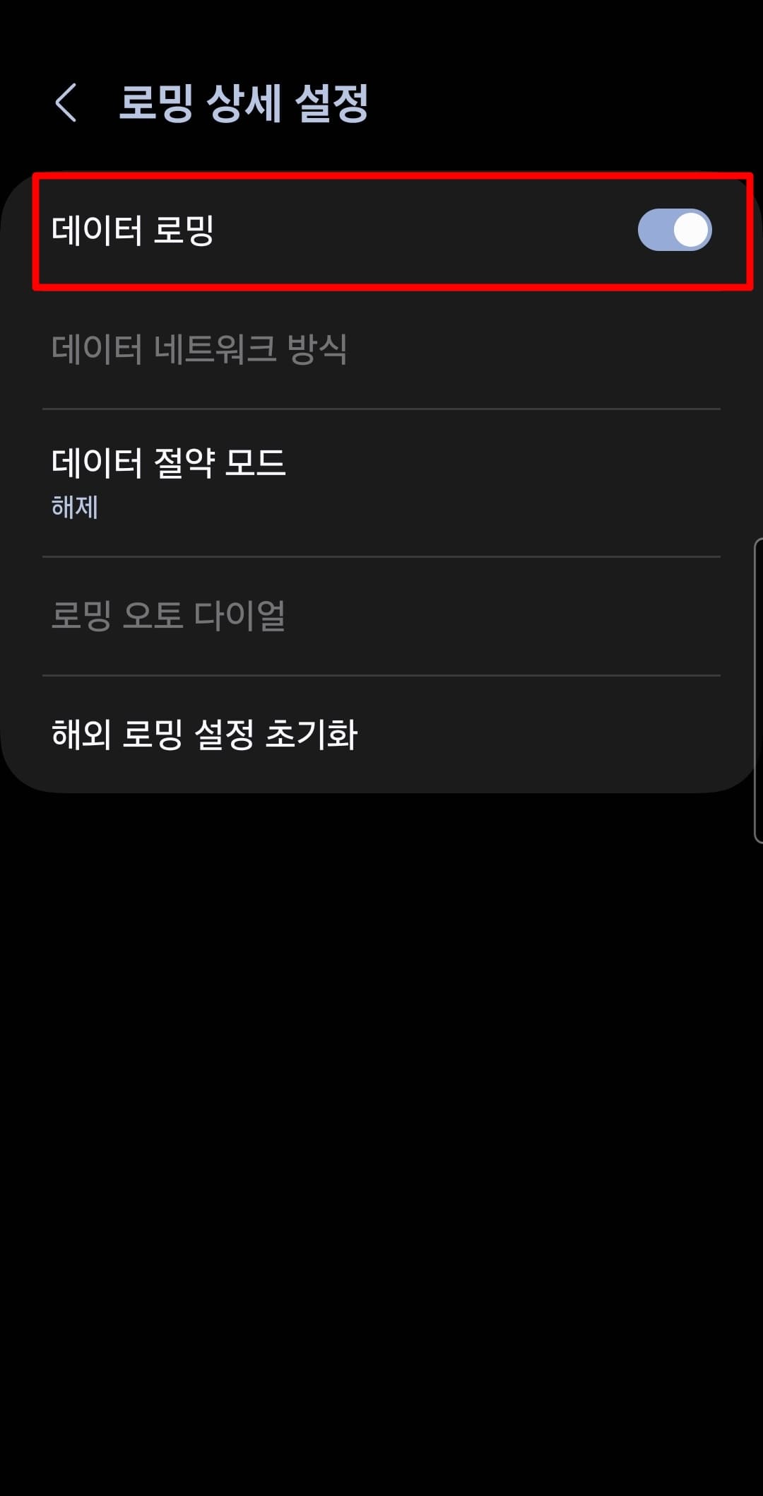 3. 아래와 같이 데이터 로밍을 활성화해주세요.