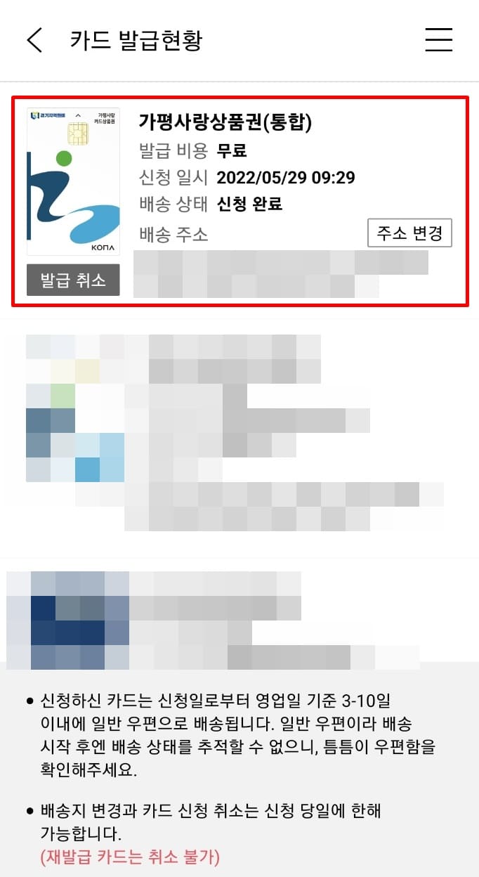 제일 우측 화면과 같이 카드 발급현황을 확인하실 수 있습니다.