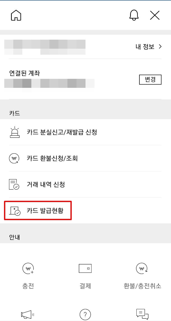 메뉴 중 [카드 발급현황]을 선택해주세요.