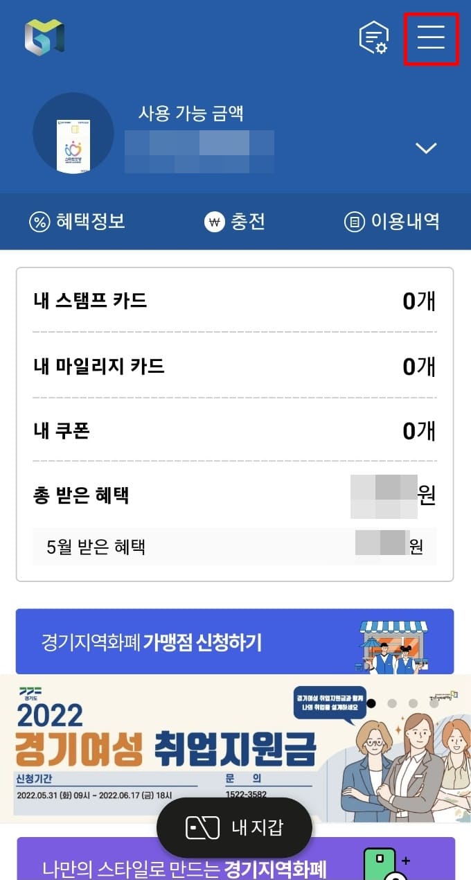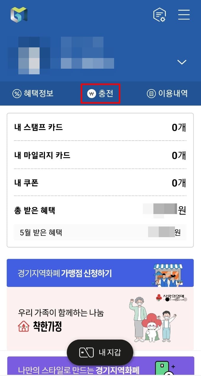 카드 신청이 완료되셨다면 경기지역화폐를 충전하셔야 사용이 가능합니다.