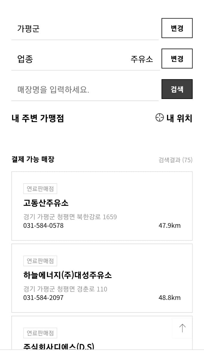 4. 다음과 같이 결제 가능 매장이 결과 리스트로 노출됩니다.