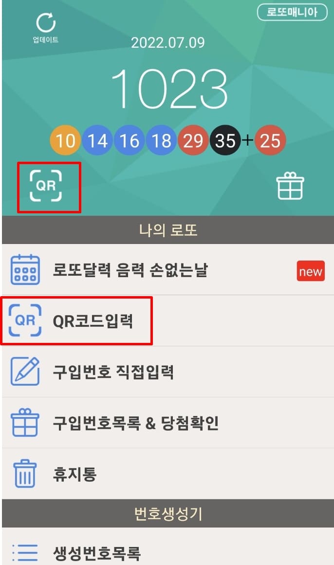 로또 마니아 APP에서도 QR 코드를 이용하여 결과 확인이 가능합니다.
