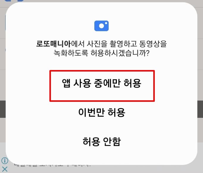 2. 사진 및 동영상 권한 설정 팝업이 발생합니다.