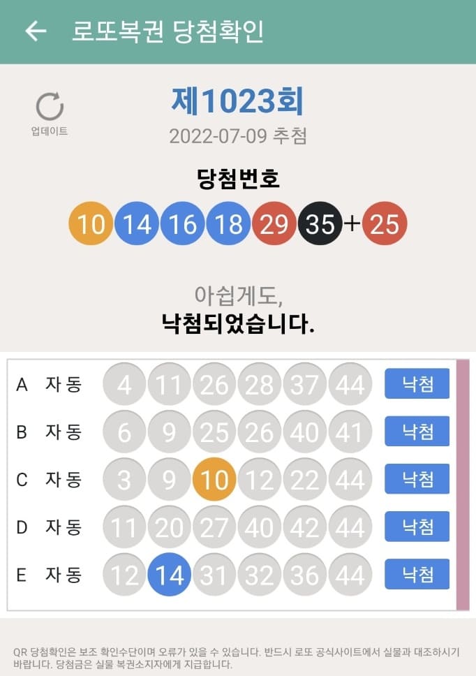 간혹 번호가 틀리게 노출되는 경우도 있으니 반드시 결과와 용지를 확인해보시기 바랍니다.