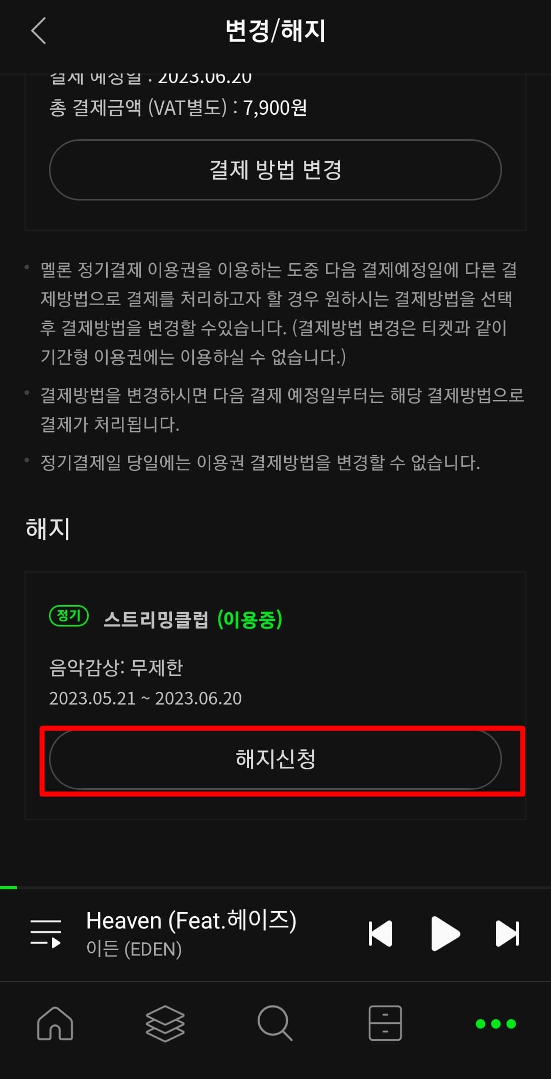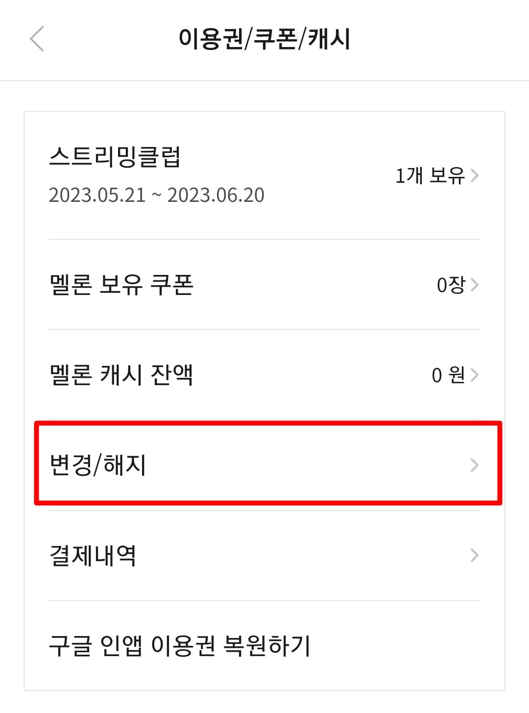 멜론 APP에서 이용권 해지하기