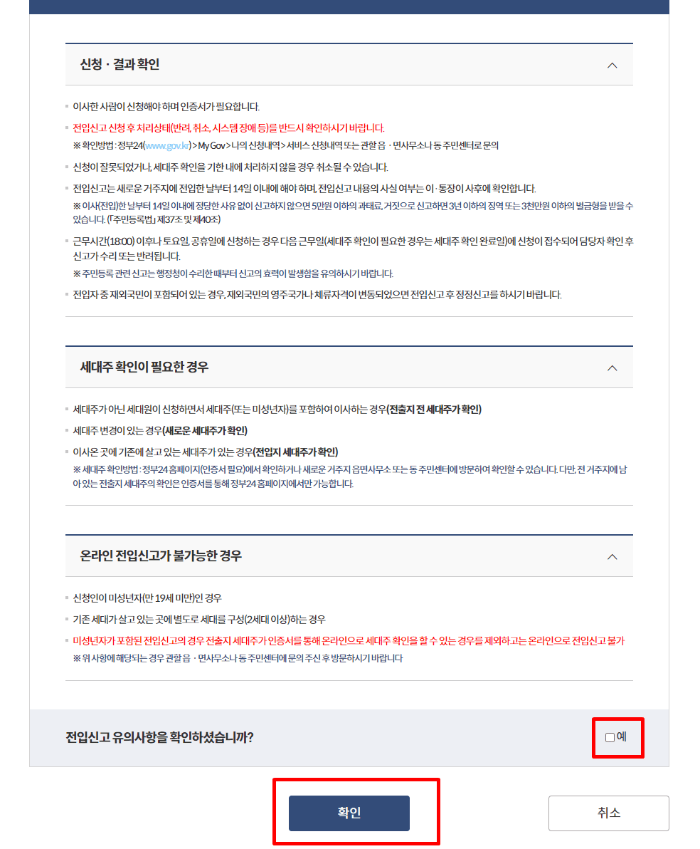 4. 온라인 전입신고유의사항이 노출됩니다.