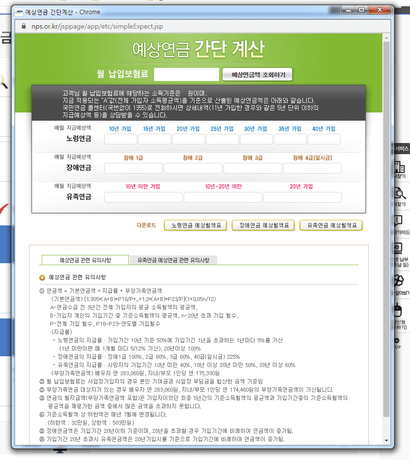 공인인증이 없다면 예상 간편조회로 금액을 입력하여 조회해보시고, 공인인증이 가능하시다면 본인이 실질적으로 납부했던 금액과 예상 수령액까지 조회가 가능합니다.