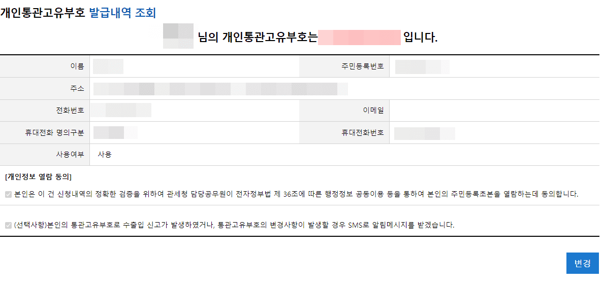 또한 기존에는 주민등록번호를 사용하여 개인정보유출의 문제가 있었다면 지금은 개인통관고유부호 사용으로 인해 한결 보안성도 높아진 것 같습니다.