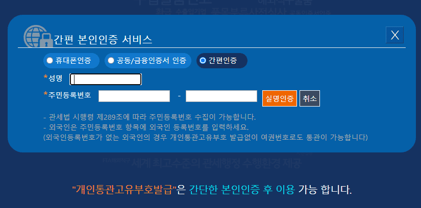 3. 개인통관고유부호를 받기 위해서는 본인인증이 필요합니다.
