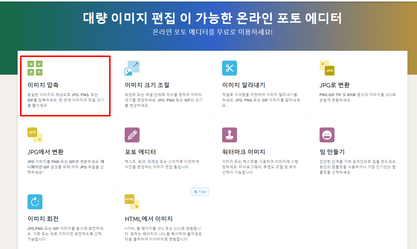 2. 사이트 내에서 [이미지 압축]을 선택해주세요.