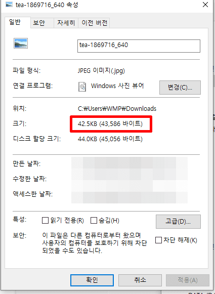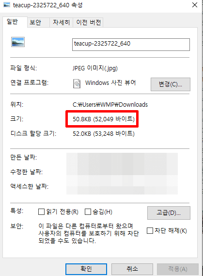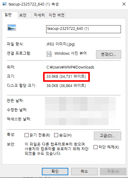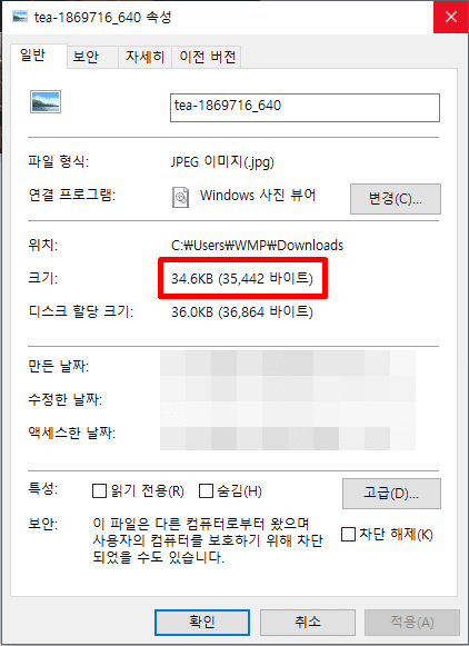 1. 사진용량을 줄이고자 하는 사진의 원본 용량을 확인해보겠습니다.