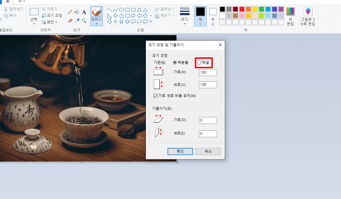 주의하실 점은 그림판 크기 조정으로 크기를 줄일 경우 사진의 크기 자체로 줄어들 수 있으니 확인 후 이용 바랍니다.