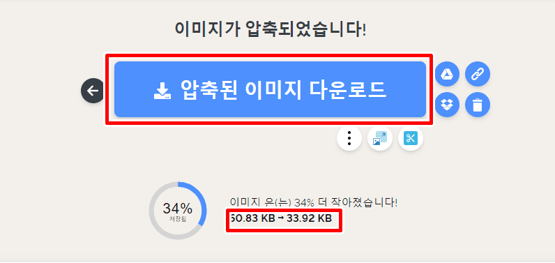 5. 용량이 42.5KB 에서 34.6KB 로 줄어든 것을 알 수 있습니다.