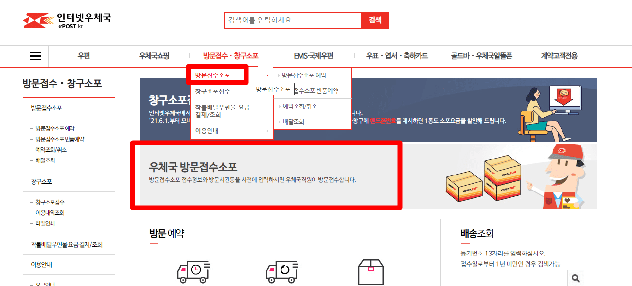 우체국택배 방문접수소포 신청 및 방문절차