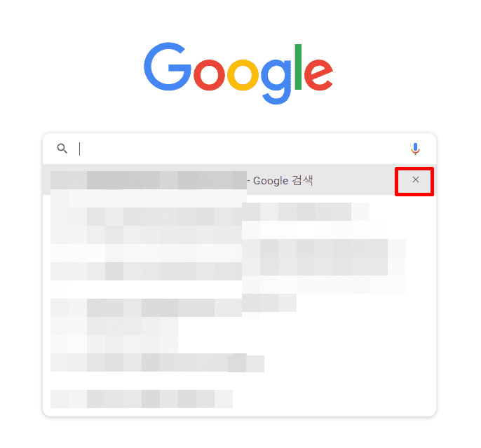 삭제하고자 하는 검색기록 위에 마우스를 올려놓으시면 아래 화면과 같이 우측에 [x] 버튼이 발생합니다. [x] 버튼 선택 시 해당 검색기록이 삭제됩니다.