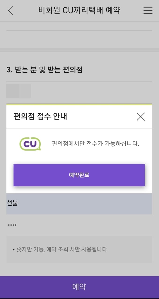 3. 택배 예약 전 유의사항을 알려주는 팝업을 꼭 확인해주세요.
