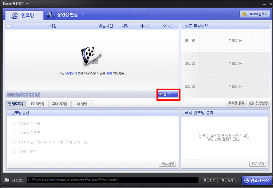 나는 간단하게 용량만 줄이고싶다거나 상세항목을 잘 모르겠다 싶으시면 아래 [인코딩 시작] 버튼을 선택하셔서 인코딩을 시작해주세요.